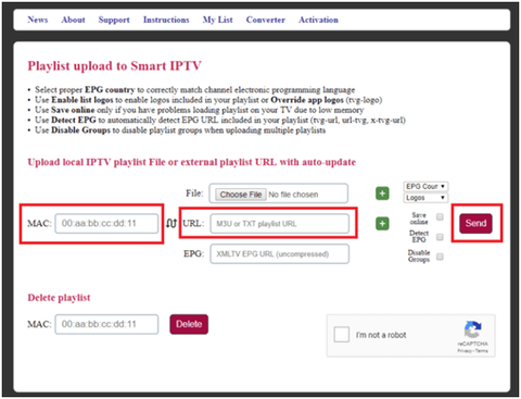#8: Enter the MAC address that displayed on the TV and the subscription URL that you received from the IPTV provider.
